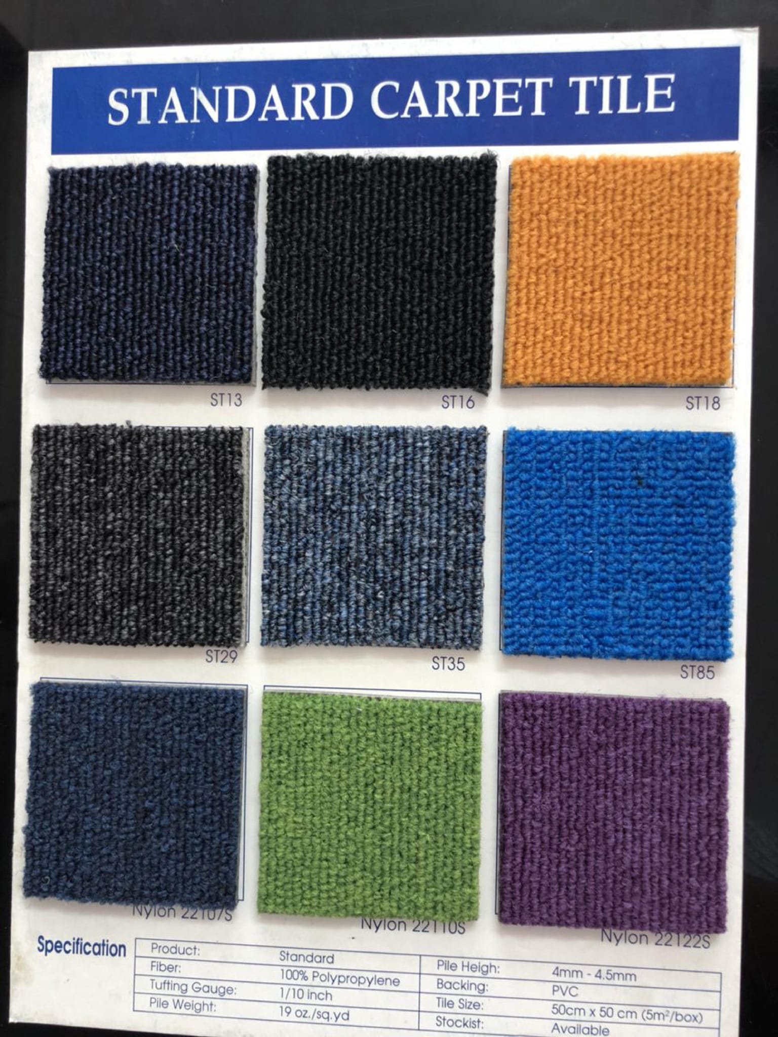 Thảm Interflor Standard trải sàn nhà. Là dòng thảm tấm đơn sắc, solid color, một màu. Thảm Interflor Standard có các màu sau: ST01, ST05, ST08, ST02, ST16, ST85, ST29...